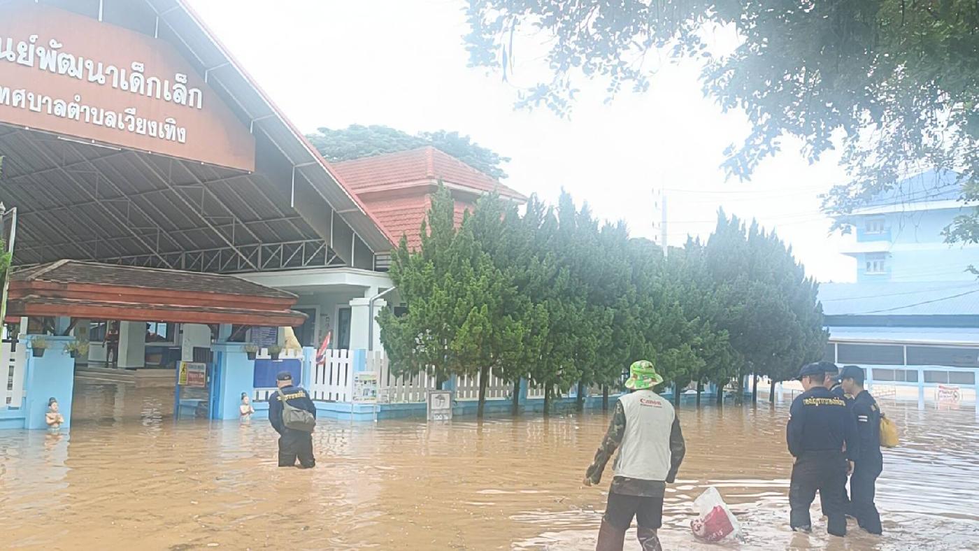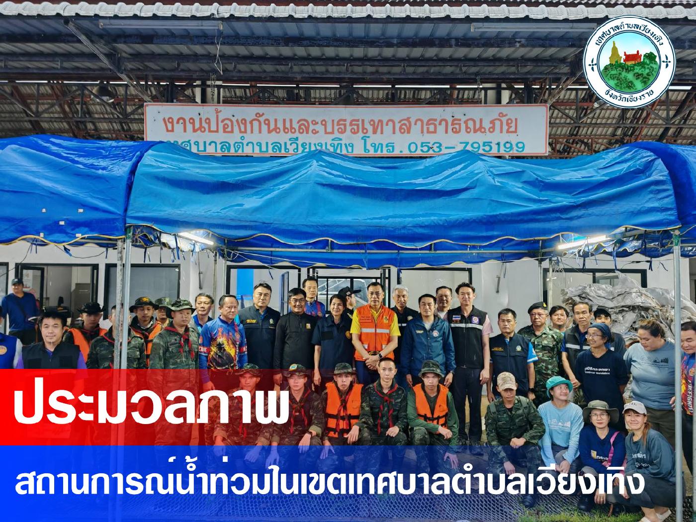ตั้งแต่วันที่ 23 สิงหาคม 2568 เป็นต้นมา พื้นที่ตำบลเวียงเทิงได้รับผลกระทบจากฝนตกหนักอย่างต่อเนื่อง ส่งผลให้เกิด น้ำท่วมฉับพลันในหลายชุมชน โดยเฉพาะพื้นที่ลุ่มต่ำและบริเวณใกล้แม่น้ำ ซึ่งระดับน้ำได้เอ่อล้นเข้าท่วมบ้านเรือน ถนน และพื้นที่การเกษตรของประชาชน ทางเทศบาลตำบลเวียงเทิงได้ ระดมเจ้าหน้าที่และอุปกรณ์เข้าช่วยเหลือประชาชนอย่างเร่งด่วน พร้อมทั้งดำเนินมาตรการระบายน้ำ จัดตั้งศูนย์อพยพชั่วคราว และให้การสนับสนุนด้านอาหาร น้ำดื่ม และสิ่งของจำเป็นอย่างต่อเนื่อง ปัจจุบันระดับน้ำในบางพื้นที่เริ่มลดลงแล้ว แต่ยังคงต้องเฝ้าระวังสถานการณ์อย่างใกล้ชิด และเตรียมความพร้อมรับมือหากมีฝนตกเพิ่มอีกในระยะนี้