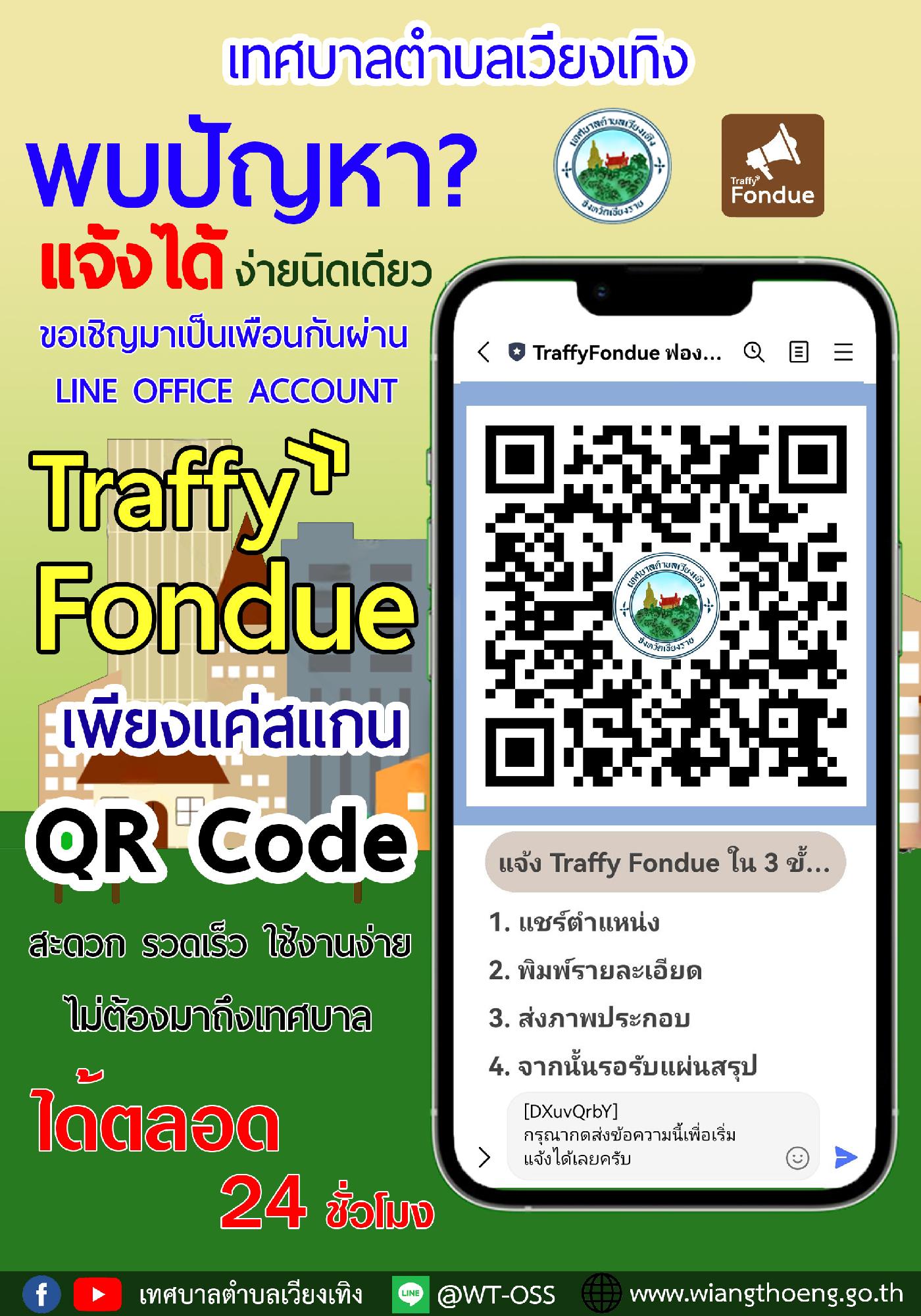 ประชาสัมพันธ์ช่องทางการแจ้งเหตุผ่าน Line OA และ Traffy Fondue